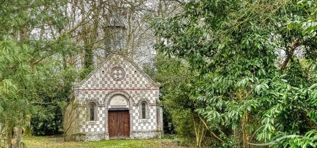 Elle s’élève au cœur d’un parc de 15 hectares, composé de 10 hectares de forêt et de 5 hectares