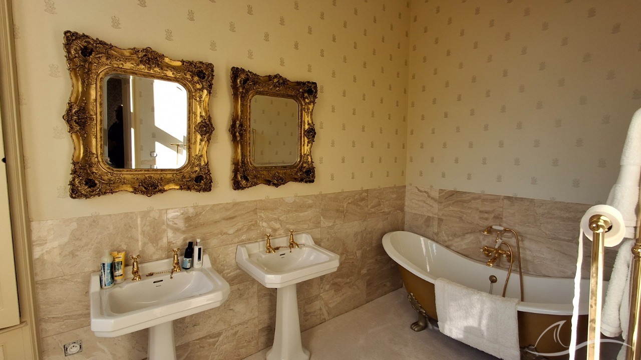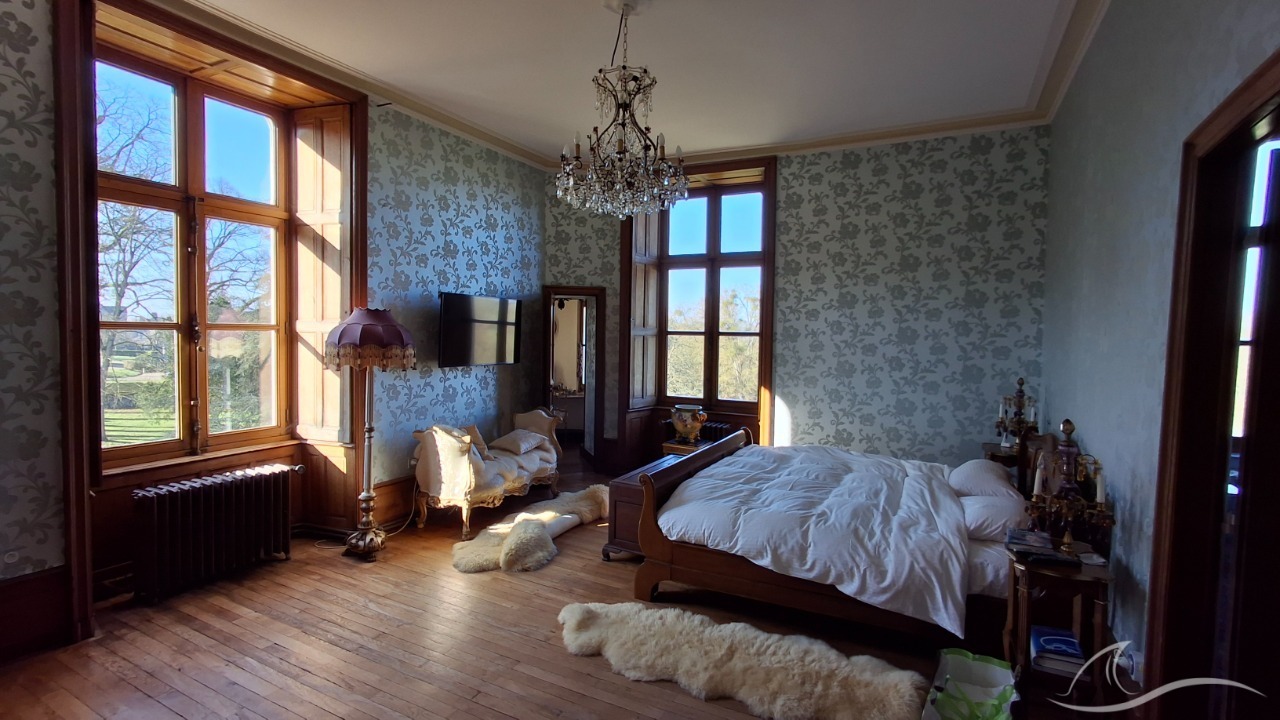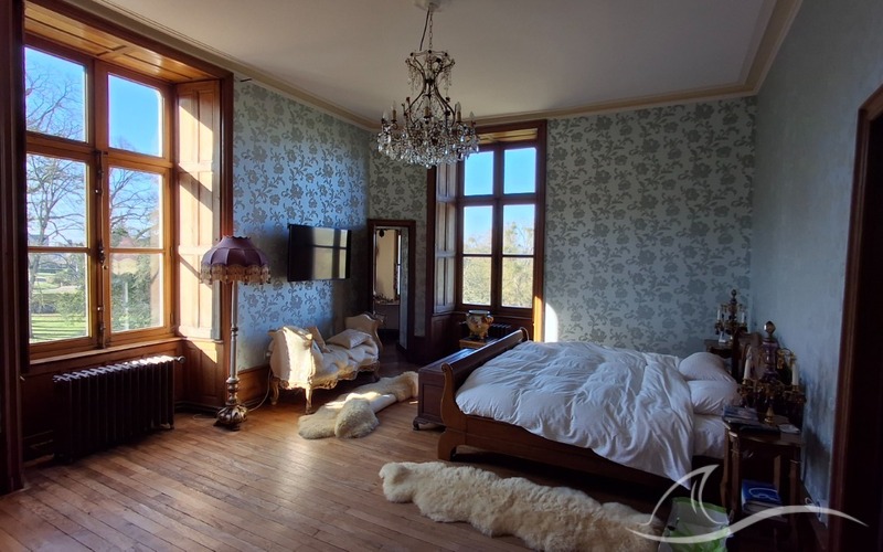Au premier étage : 7 chambres parquetées en chêne et ornées de cheminées ; 5 salles de bains ou de douche.