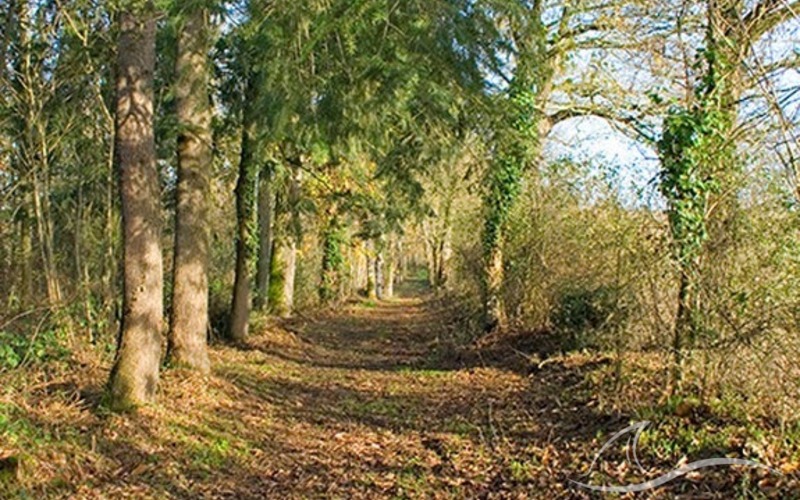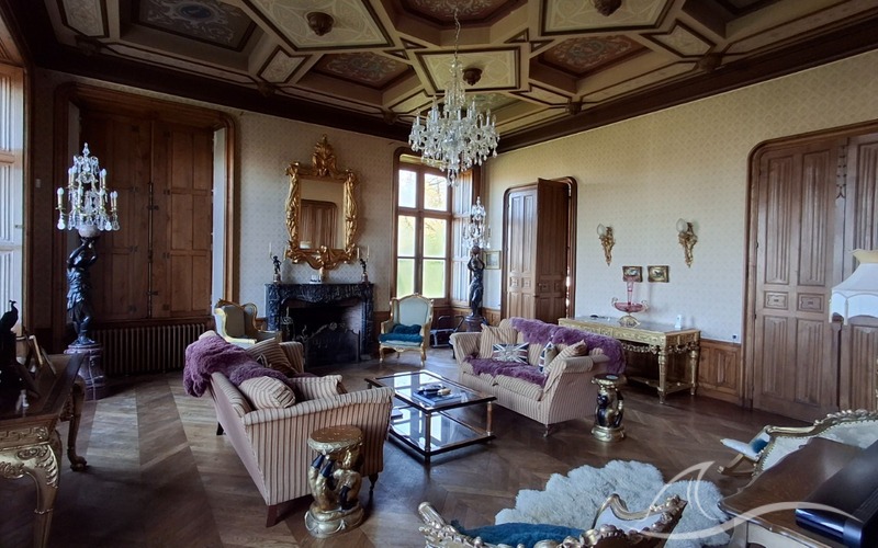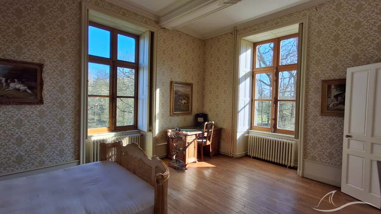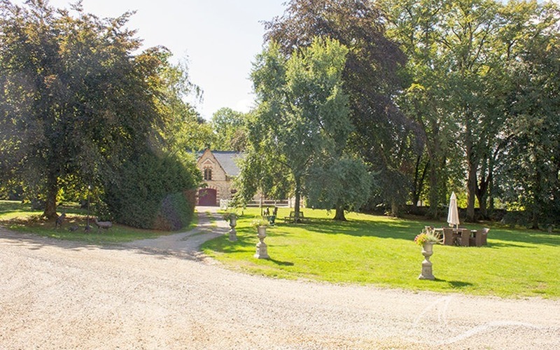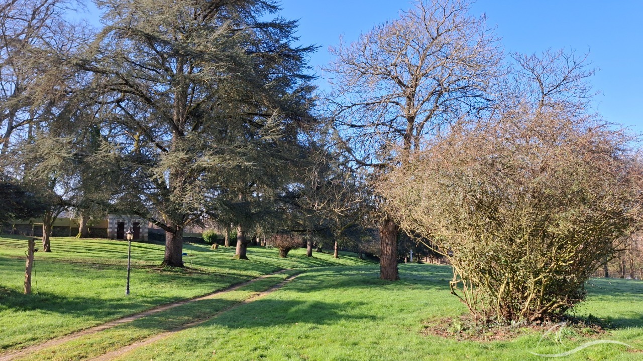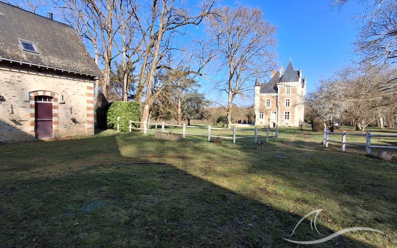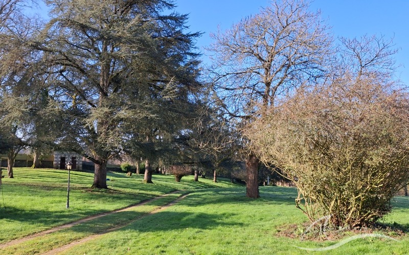 D'une surface totale de 20 ha, le terrain est agréablement disposé autour du château et légèrement vallonné. Il se compose d' un superbe parc à l' anglaise planté de grands arbres d' ornement qui fut dessiné par un grand paysagiste du XIXe siècle , de bois percés de belles allées et de prés aménagés en paddocks clôturés en bois, le tout agrémenté d' un bel étang.