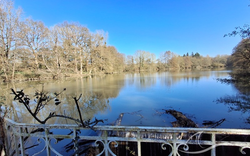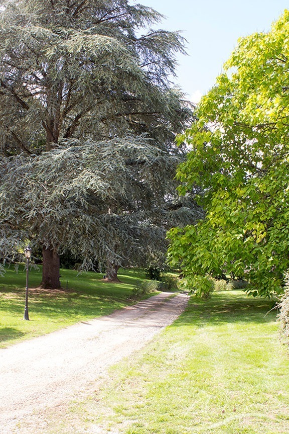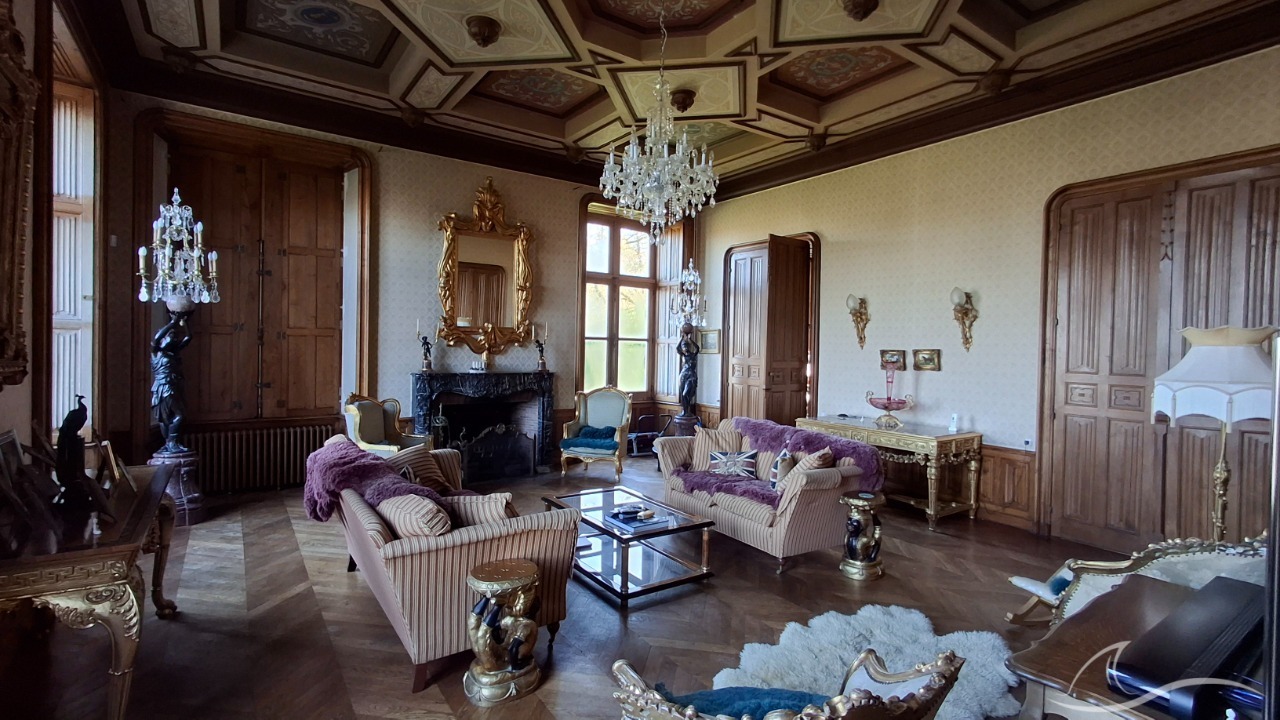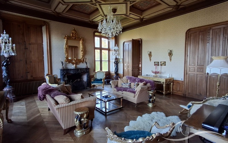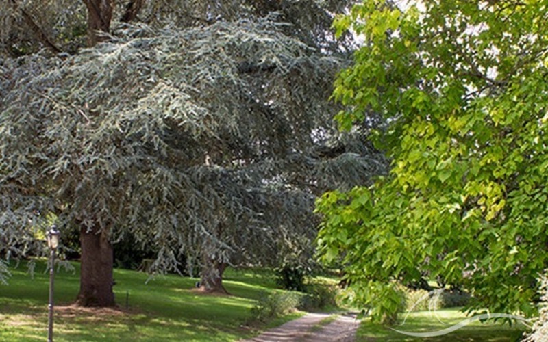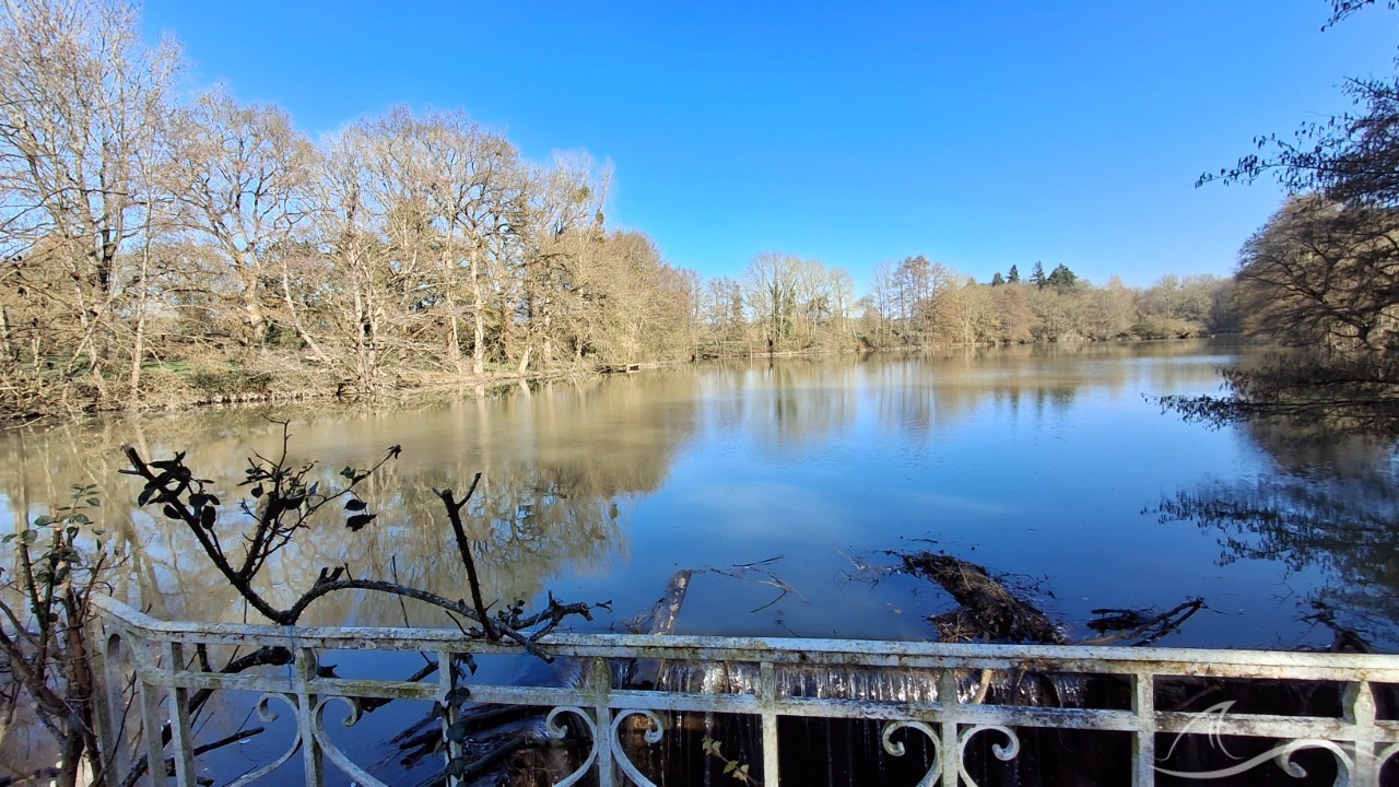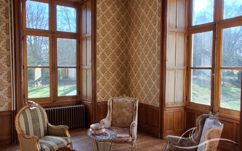D'une surface totale de 20 ha, le terrain est agréablement disposé autour du château et légèrement vallonné. Il se compose d' un superbe parc à l' anglaise planté de grands arbres d' ornement qui fut dessiné par un grand paysagiste du XIXe siècle , de bois percés de belles allées et de prés aménagés en paddocks clôturés en bois, le tout agrémenté d' un bel étang.