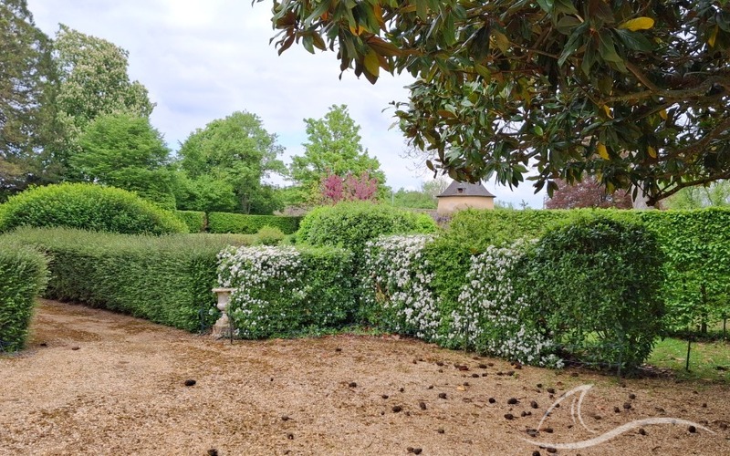À l’est, un jardin en topiaire complète harmonieusement le verger, le potager et le pigeonnier.