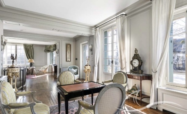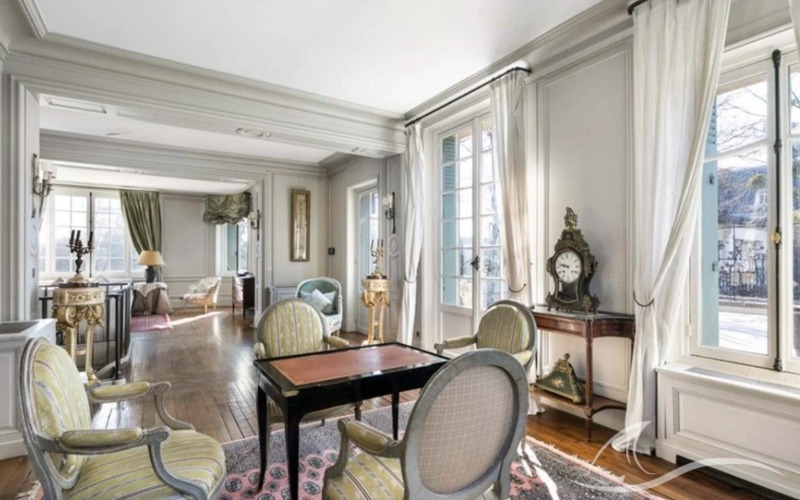 À l’entrée de l’ancien domaine de Madame du Barry, dans un cadre verdoyant au cœur des Yvelines, cette remarquable propriété de style Louis XV édifiée à la fin du XIXe siècle développe environ 790 m² habitables, nichés dans un parc arboré d’environ 5 300 m².