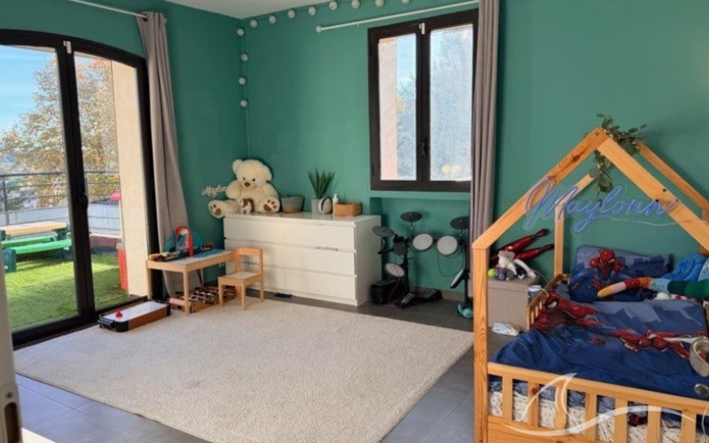 À l’étage, une quatrième chambre bénéficiant d’une terrasse privative avec vue dégagée