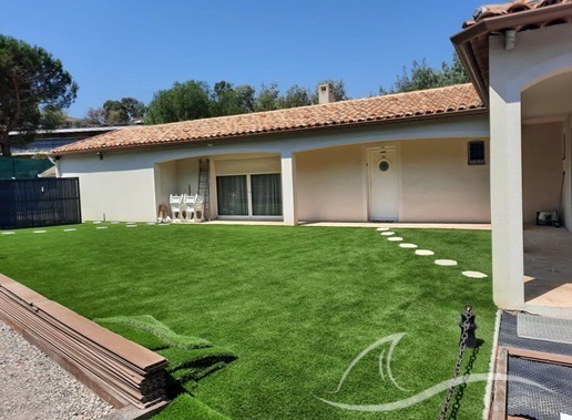 D'une superficie de 130 m², elle dispose d’un terrain de 1 080 m² idéal pour profiter des espaces extérieurs.