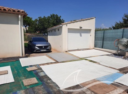 Espace détente extérieur : boule de pétanque pour partager des moments conviviaux. Volets électriques