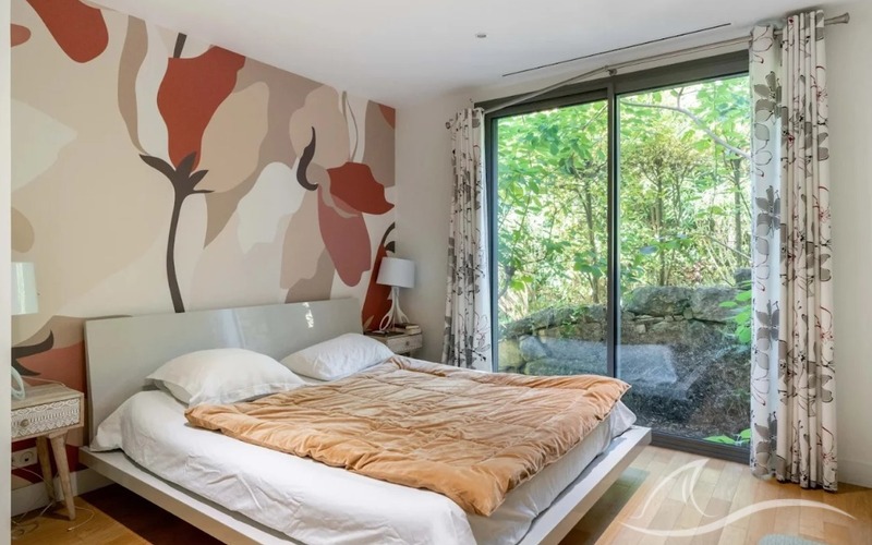 En rez-de-jardin, cinq suites, chacune dotée de sa salle de bain ou salle d’eau privative, s’ouvrent directement sur le jardin.